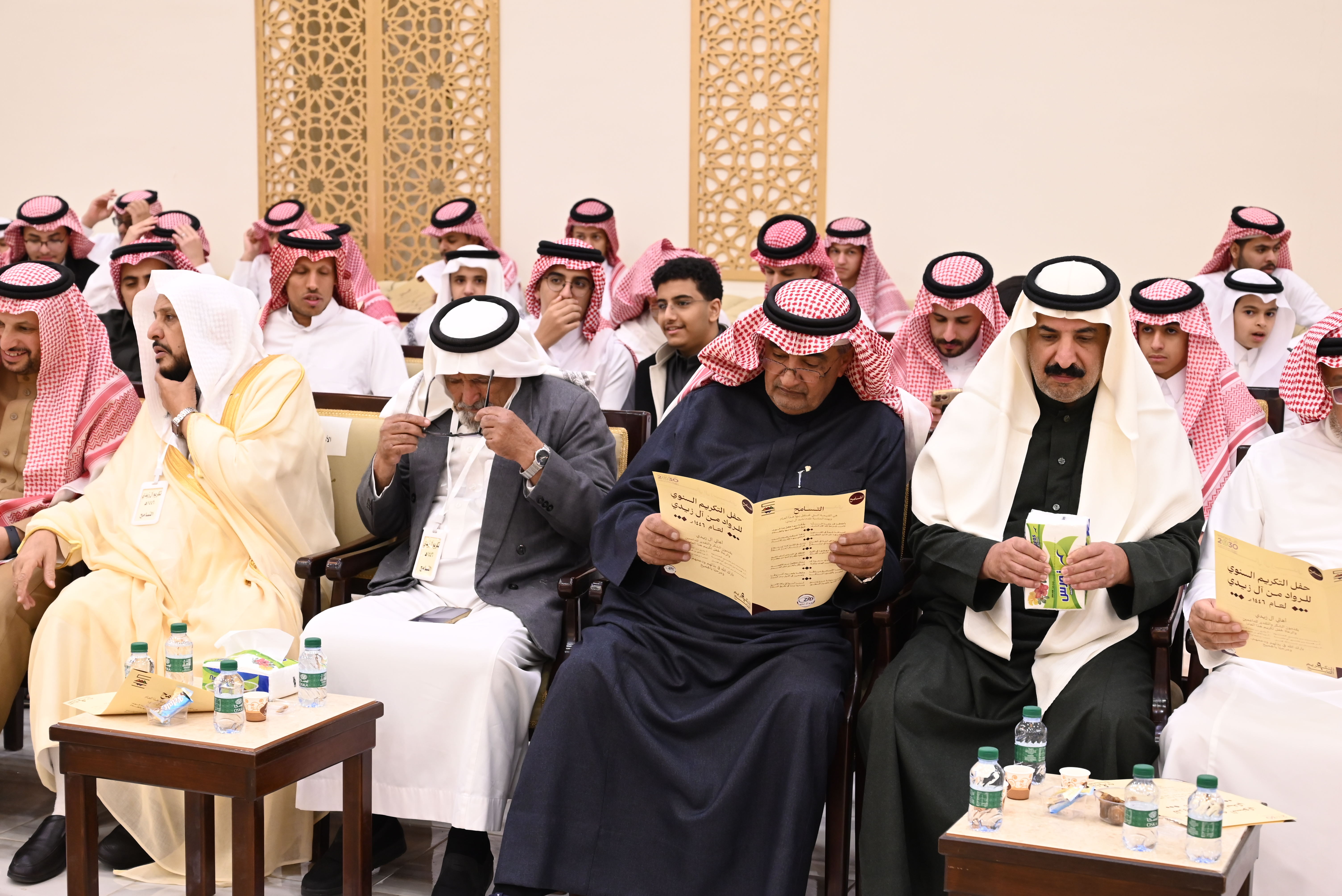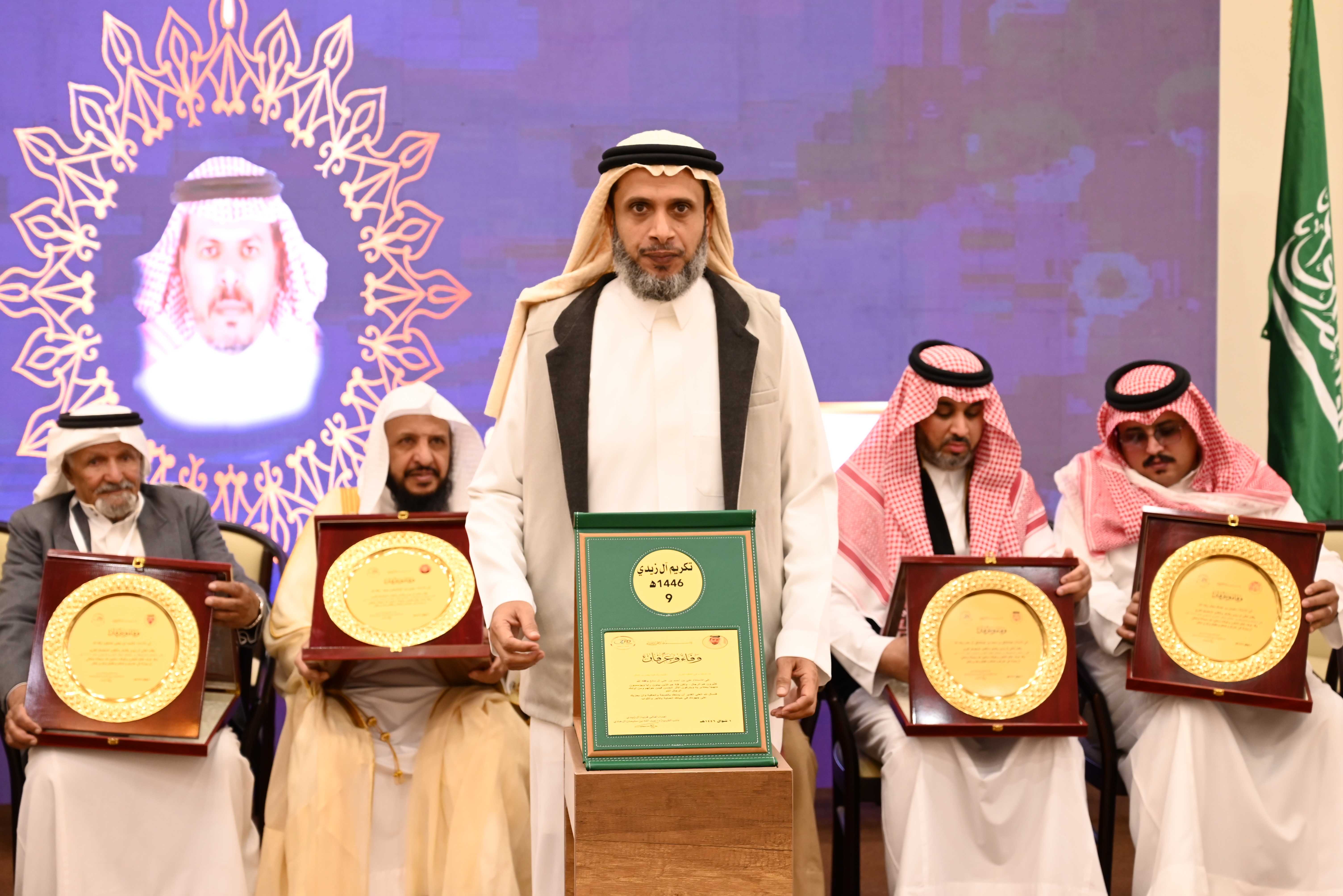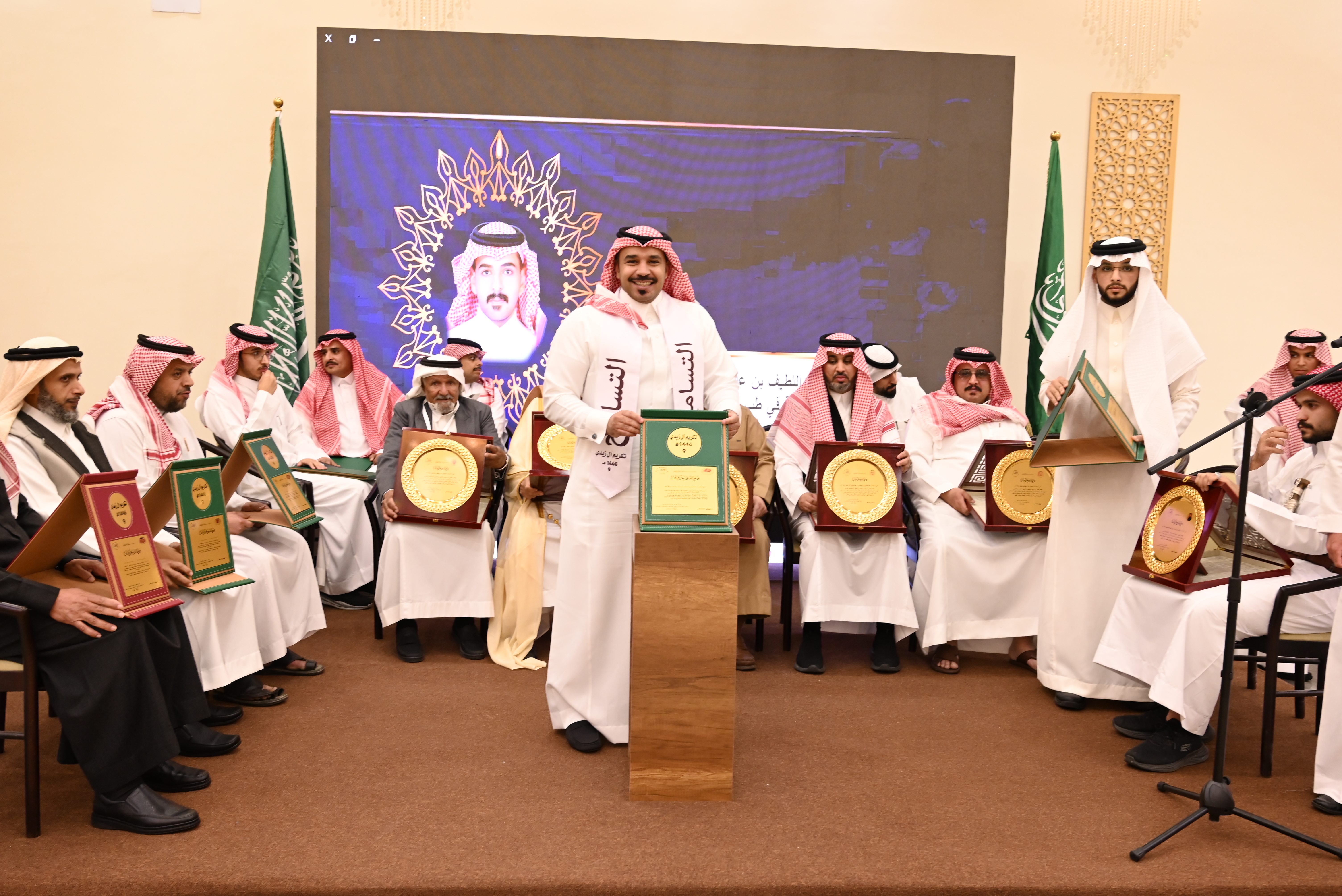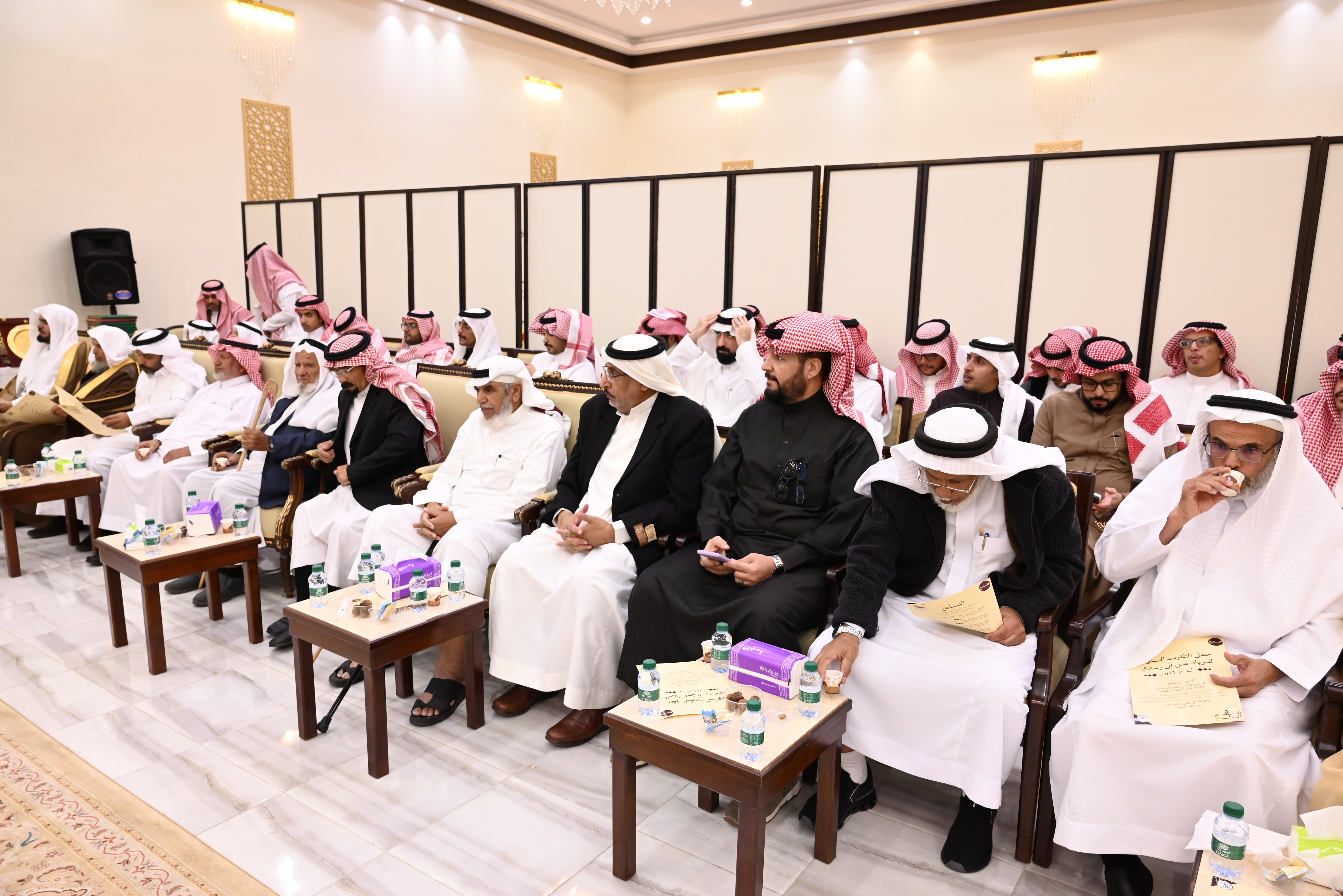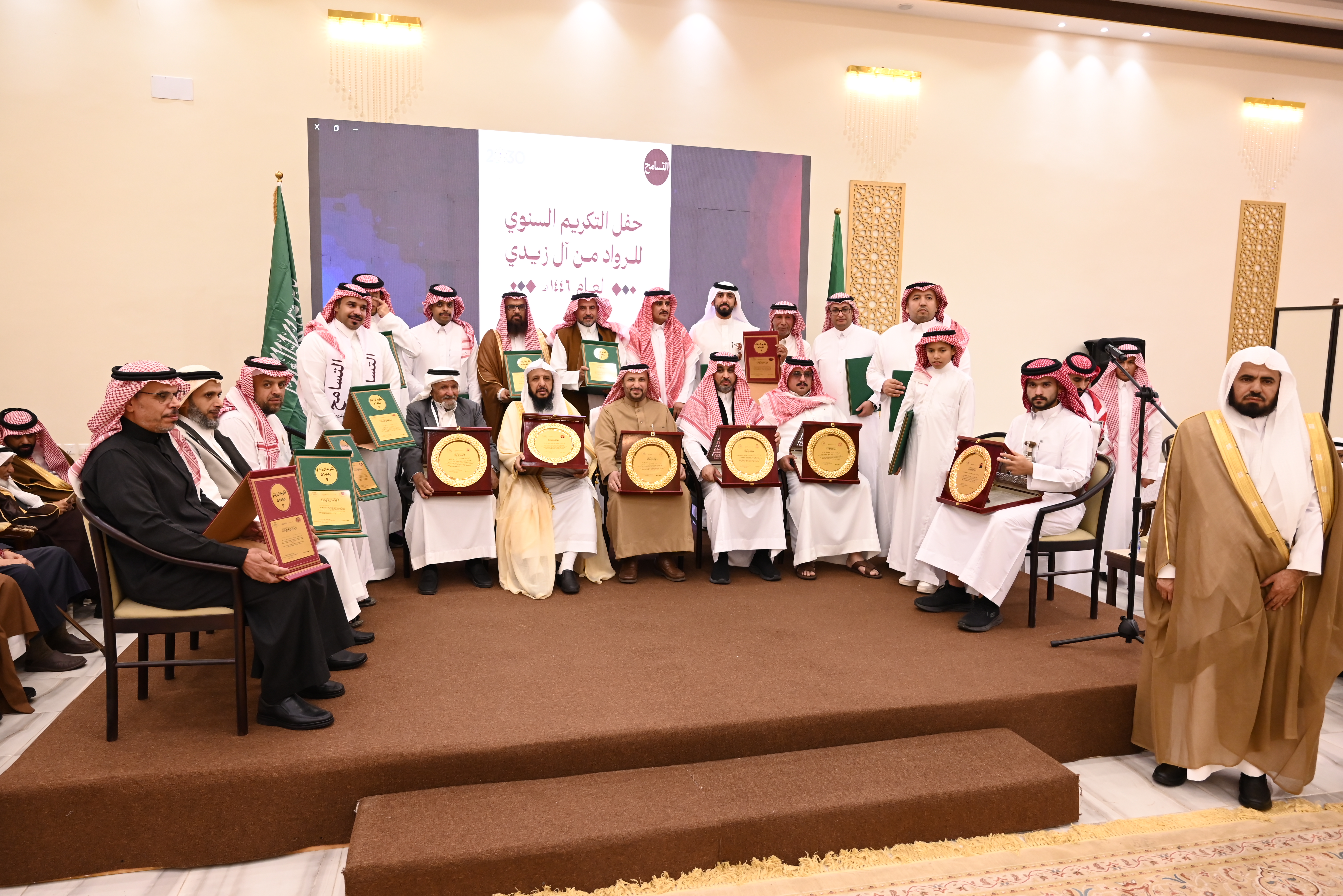 أهالي زيدي يقدمون الشكر والتقدير للداعمين والرعاة لحفل تكريم هذا العام: أ/ مشبب بن يحيى حمحوم أ/يحيى بن عبدالرحمن بني علي محيا أ.د. محمد بن يحيى أبو ملحة أ/عبدالخالق بن محمد بن عبدالخالق آل عامر أ/سليمان بن عبدالله مجثل الشاب/ إبراهيم بن أحمد بن إبراهيم السعيدي - المكرمين المتقاعدون: الأستاذ/ إبراهيم بن حمدان بن محمد آل عامر الأستاذ/ علي بن أحمد بن علي آل مانع الأستاذ/ قاسم بن عبدالله بن إبراهيم آل قاسم الأستاذ/ يحيى بن سليمان بن عايض مصبح - المكرمون في عملهم الوظيفي: الأستاذ/ سعيد بن علي بن عبدالله آل عامر (جامعة الملك خالد) الأستاذ/ سليمان بن عبدالله بن يحيى مجثل (أمانة منطقة عسير) الأستاذ/ عادل بن أحمد بن يحيى عسيري (فرع وزارة البيئة والمياه والزراعة بمنطقة عسير) الأستاذ/ يحيى بن عبدالله بن يحيى مجثل (شركة المياه الوطنية) - الحاصلون في الثانوية على نسبة تعدت التسعين بالمئة: الطالب/ ثامر بن حسن بن عبدالله آل مرعي (99.81%) -الحاصلون على درجة الدكتوراة والماجستير: الأستاذ/ إبراهيم بن عبدالله بن يحيى مجثل (ماجستير الأمن السيبراني) الدكتور/ عبدالرحيم بن مشبب بن يحيى حمحوم (الزمالة السعودية في الصرع وتخطيط الدماغ) الدكتور/ عبداللطيف بن علي بن عبدالرحمن محيا (الزمالة السعودية في طب الطوارئ لدى الأطفال) - المرابطون في الحد الجنوبي: جندي أول/ مشعل بن محمد بن علي عبدالوهاب أصحاب المبادرات لخدمة أهداف مجلس القرية: الأستاذ/محمد بن عايض بن عبدالله فطيس الأستاذ/ خالد بن عبدالله بن محمد آل مرعي - المكرمين من الطلاب: الطالب/ وائل بن خالد بن عبدالله آل مرعي (لتكريمه من وزارة التعليم بحصوله على مستوى إدارات التعليم بالمملكة في مجال النشاط الطلابي) - المكرمات لعام 1446 أولاً- الرائدات: - الأستاذة/ زهرة بنت عبدالله بن محمد هادي - الأستاذة/ خاتمة بنت عبدالخالق بن محمد آل عامر - الأستاذة/ عائشة بنت أحمد بن محمد سويد - الأستاذة/ علوة بنت علي بن عبدالله عبدالخالق - الأستاذة/ فاطمة بنت أحمد بن يحيى جعيدي - الأستاذة/ مهرة بنت عبدالوهاب آل فاضل ثانياً- الحافظات لكتاب الله - الأستاذة/ عائشة بنت أحمد نازح (25 جزًءا) - الأستاذة عائشة بنت علي بن مداوي (17 جزءًا) ثالثاً- القدوات في العمل الإنساني: - الأستاذة/ زينب بنت محمد بن عايض مصبح (لتبرعها بكليتها لزوجها وإنقاذ حياته) رابعاً- المتقاعدات: الأستاذة/ زينب بنت عبدالله بن علي حجازي الأستاذة/ فاطمة بنت عبدالله بن علي حجازي خامسا- الحاصلات على تكريم في عملهن الوظيفي: الأستاذة/ شريفة بنت سليمان بن محمد آل هادي سادساً- الحاصلات على درجة الدكتوراة والماجستير: الدكتورة/ روان بنت شاكر بن مرعي بن محمد آل مرعي (شهادة الاختصاص السعودية في تقويم الأسنان وعظام الوجه والفكين) سابعا- الحاصلات على درجة البكالوريوس بتقدير ممتاز مع مرتبة الشرف: الطالبة/ جنى بنت ناصر بن عبدالله آل هادي (تخصص العلاج الطبيعي) ثامناً- الحاصلات في الثانوية العامة بمعدل أعلى من 99% : الطالبة/ روض بنت أحمد بن يحيى حافظ (99.95) الطالبة/ همس بنت إبراهيم بن عبدالله آل قاسم (99.91) الطالبة/ مرام بنت خالد بن عبدالخالق بن عبدالله العسيري (99.76) التسامح هي القيمة التي نحتفل بها هذا العام وبهذه المناسبة نقدم نشيد آل زيدي: بأخلاقنا قد بلغنا الذُّرا وفُقْنا بها كلَّ هذا الورى ومن شِرْعةِ الله كان السُّرى نزيحُ الكروبَ بها والظلامْ تسامحُنا شيمةٌ في القلوبْ بها عَبَقت بالسلام الدروبْ ومِلنا بها عن شديدِ الكروبْ لنرضي بها اللهَ ربَّ الأنامْ فكن يا أخي ليّنًا في الطباعْ وسَمحَ المُحَيّا فذا يُستطاعْ لتصبحَ مِن بيننا في ارتفاعْ إلى أن تنالَ أعزَّ المقامْ عسيرُ لها نهجُها في القيمْ تؤكّدُ في الناسِ أسنى الشيمْ فيكتبُها في النفوسِ القلمْ سجايا كرامٍ أتوا من كرامْ وفي آل زيديْ سمونا إلى مثالٍ نكونُ به الأفضلا ننافسُ أهلَ الهدى والعُلا فنهطلُ بالخيرِ مثلَ الغمامْ جعلنا التسامحَ ميثاقَنا وحُطنا بفحواه أشواقَنا لنغمرَ بالضوءِ أحداقَن