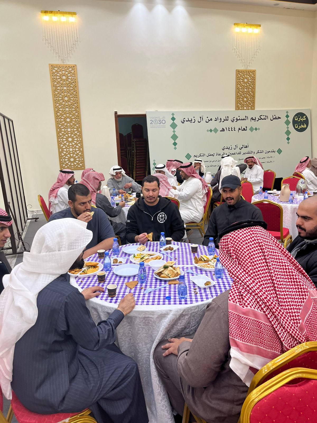 أقام أهالي قرية آل زيدي الملتقى الرمضاني السنوي لـ عام 1445 هـ ضمن مبادرة أجاويد2 ووقد أستهل اللقاء بعمل فطور جماعي تعاوني أعده عدد من شباب القرية وشارك به جميع الفئات العمرية من كبار السن والشباب والأشبال. ثم أقام المشاركين ندوه ثقافيه في ثنايا الملتقى الرمضاني السنوي وقدمت عدد من الكلمات كان في مستهلها كلمة توعويه للحضور ألقاها نائب القرية الدكتور عبد الله بن سليمان آل هادي شدد من خلالها إلى أهمية استغلال أوقات شهر رمضان وتقسيمه ما بين الجانب التعبدي والعمل. ومن جانبه قدم الدكتور عبد الرحمن فصيّل مدير تعليم عسير السابق والملحق الثقافي السعودي بماليزيا السابق كلمة تفاعليه وجهها لشباب القرية وشاركه عدد من الحضور. الجدير بالذكر أن اللقاء أستهل بعمل فطور جماعي تعاوني أعده عدد من شباب القرية وشارك به جميع الفئات العمرية من كبار السن والشباب والأشبال ومن ثم أدى الجميع صلاة المغرب لتستكمل فعاليات الملتقى بكلمة توعويه للحضور ألقاها نائب القرية الدكتور عبد الله بن سليمان آل هادي شدد من خلالها إلى أهمية استغلال أوقات شهر رمضان وتقسيمه ما بين الجانب التعبدي والعمل، ومن جانب آخر وجوب التعاون بين أفراد القرية على نهج ممن سبقوهم من أباءهم وأجدادهم والاستزادة من العلم عبر القراءة في مختلف المعارف؛ إذ إنّ العلم والمعرفة تعود بالنفع على الفرد نفسه وعلى الوطن ليسمو رفعة وفق نهج قيادتنا الرشيدة.